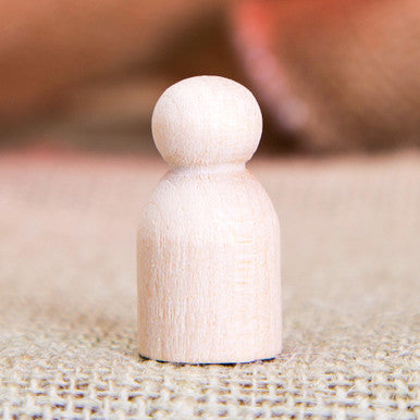 This 1-1/8 inch maple baby peg doll features a compact profile and true 5/8" (15.88 mm) base—making it perfect for dollhouses, nativity scenes, and miniature family sets. Skillfully turned from solid maple hardwood, each peg doll is sanded smooth and left unfinished, providing a blank surface ready for detailed painting, staining, or other creative personalization. Sized for crafting tiny characters and small-world play, these peg dolls support both professional and home DIY creativity while offering the durability and appearance expected in quality hardwood toys.
