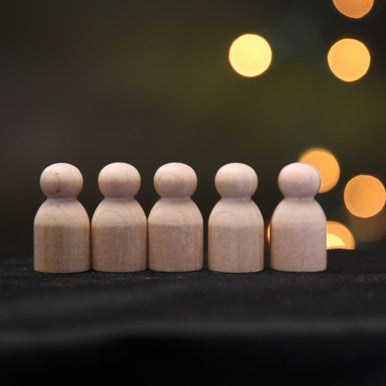 The 1-1/8" maple baby peg doll fits naturally in Montessori and Waldorf family figure assortments, ideal for sorting, counting, and introducing early narrative play. Makers frequently use these for dollhouse siblings, nativity infants, and custom cake toppers. Thanks to their petite scale, they are a clever solution for DIY party favors or as playful accents in miniature decor and holiday settings. For a unique twist, try painting them as colorful counters or board-game tokens—supporting math, memory, and imaginative activities.